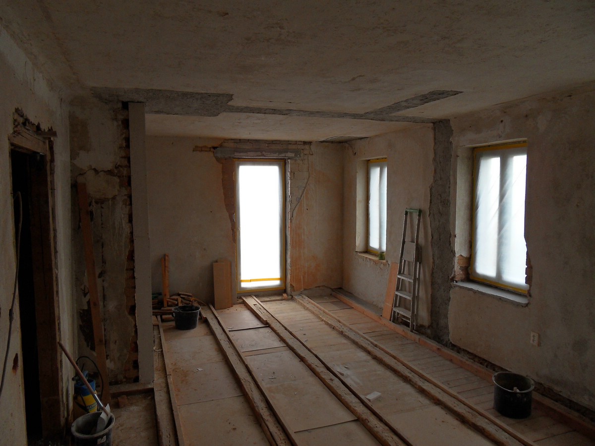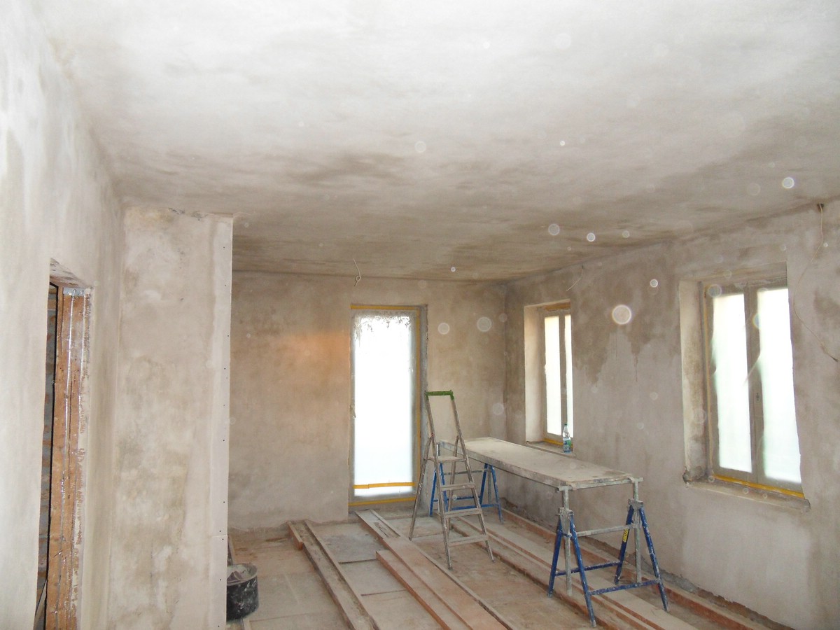 die ersten Putzarbeiten sind geschafft 6. April 2012Allgemeinzinn während in der Stube schon der Putz wieder an die Wand kommt, wird dem Bad weiter zu Leibe gerückt. [Show as slideshow]