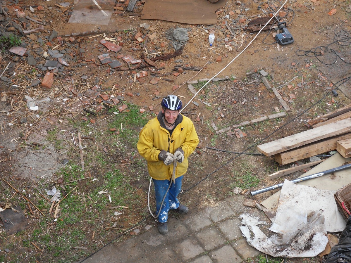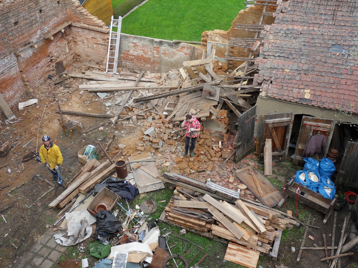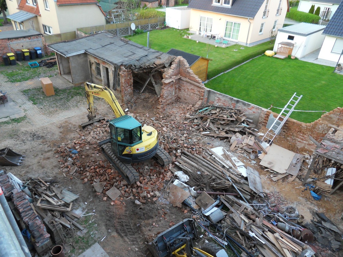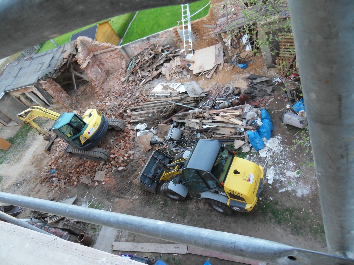Im Hof fährt schwere Technik auf 23. April 2012Allgemeinzinn aber die „schlägt“ beim Nachbarn zu. Dort wird nicht gekleckert sondern geklotzt. Wir sind in der Zeit weiter mit Innenputz beschäftigt [Show as slideshow]