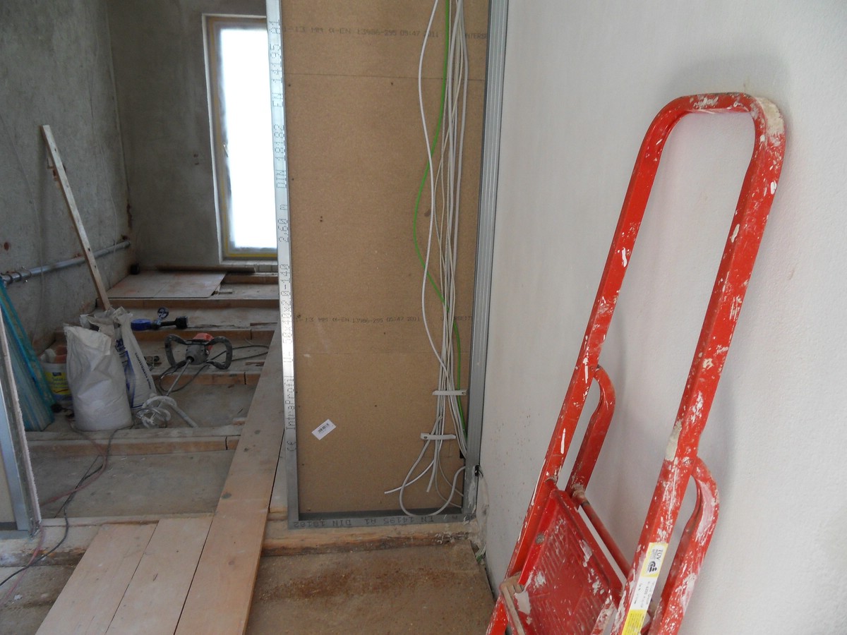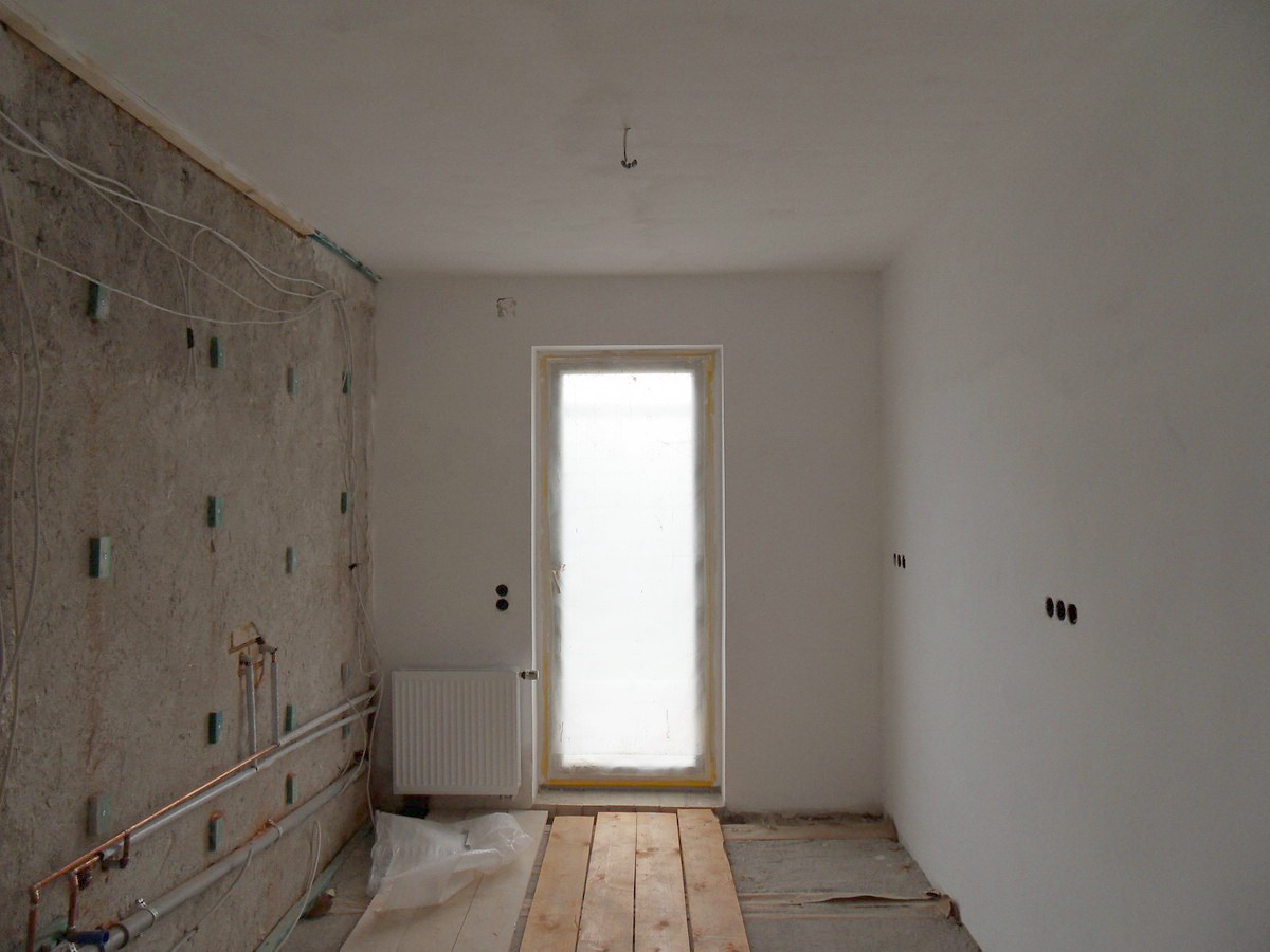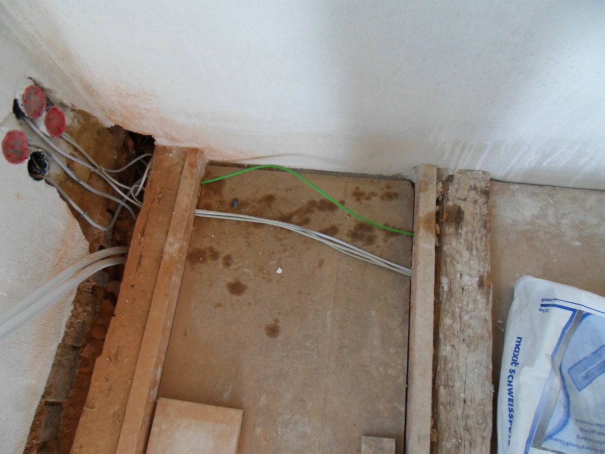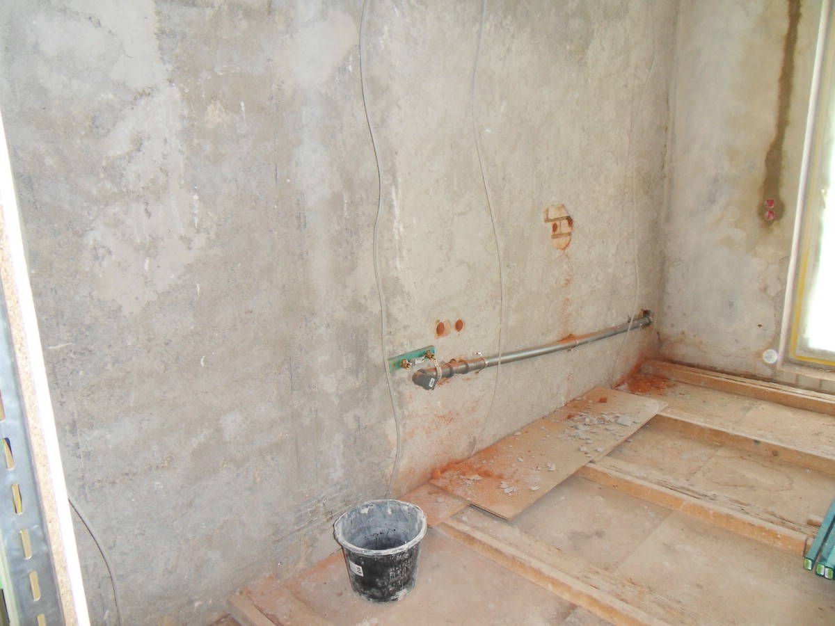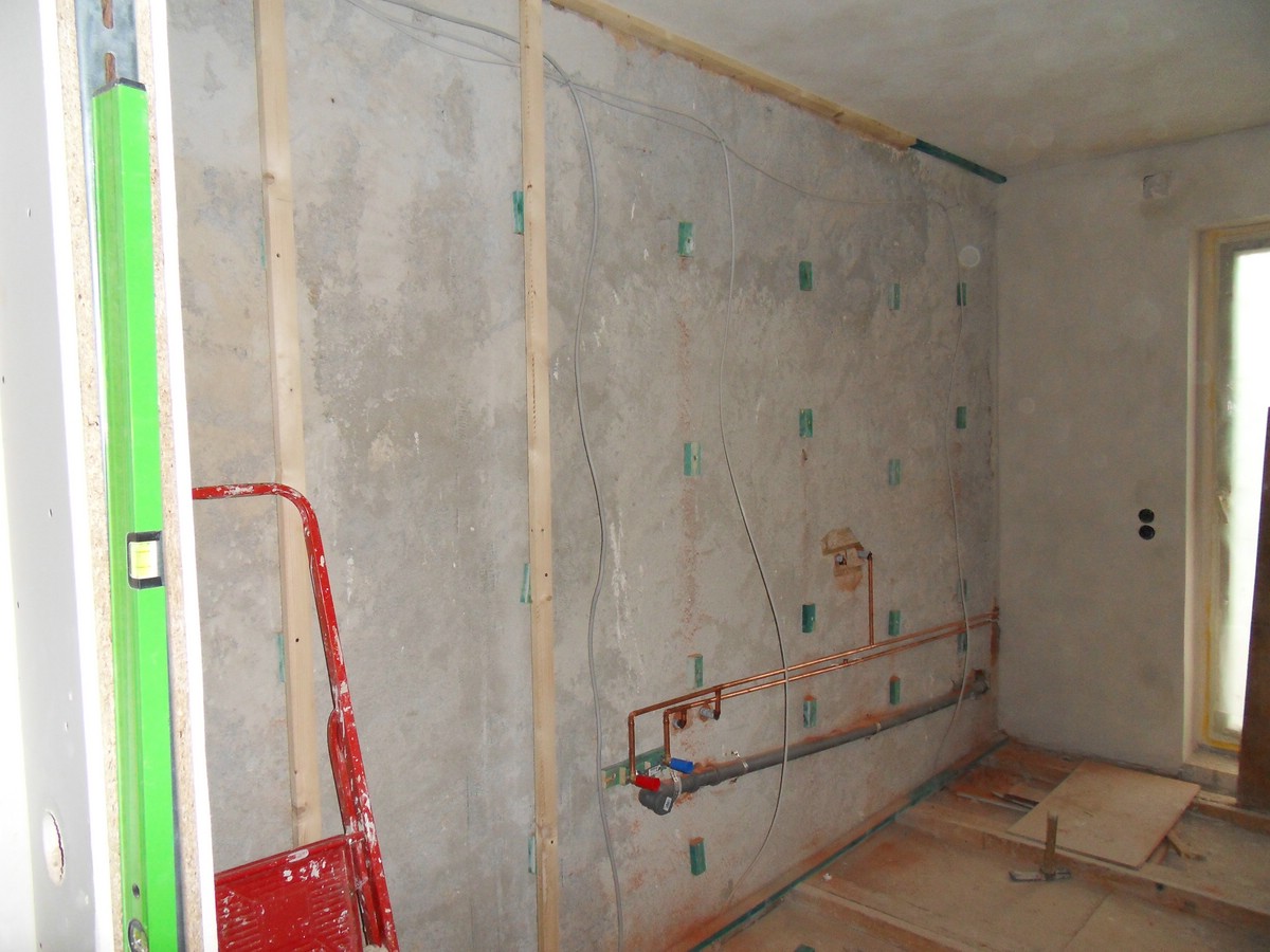 Im Bad ist nun Platz in der Wand für die Rohre nach oben. Also etwas mehr Platz in dem doch kleinen Bad.