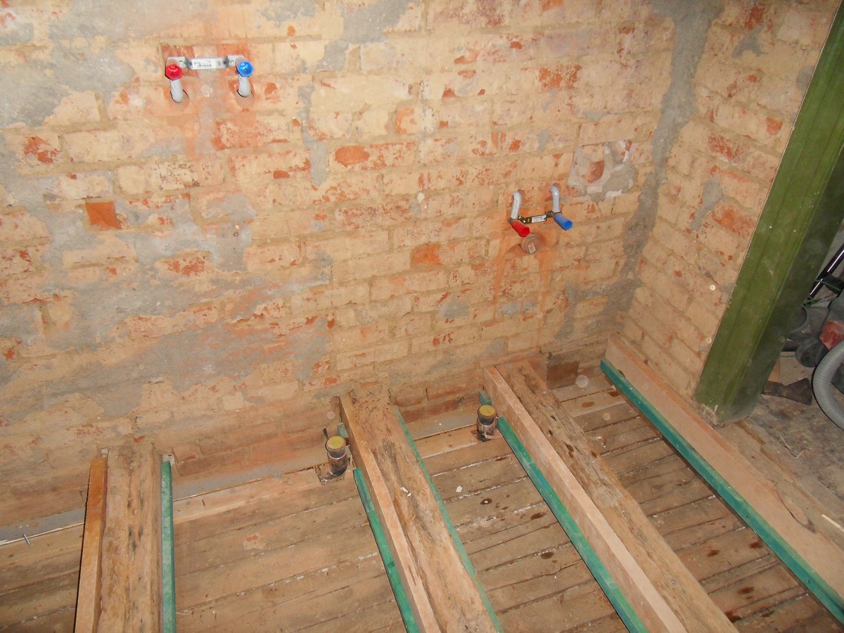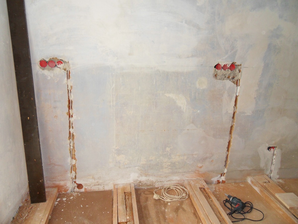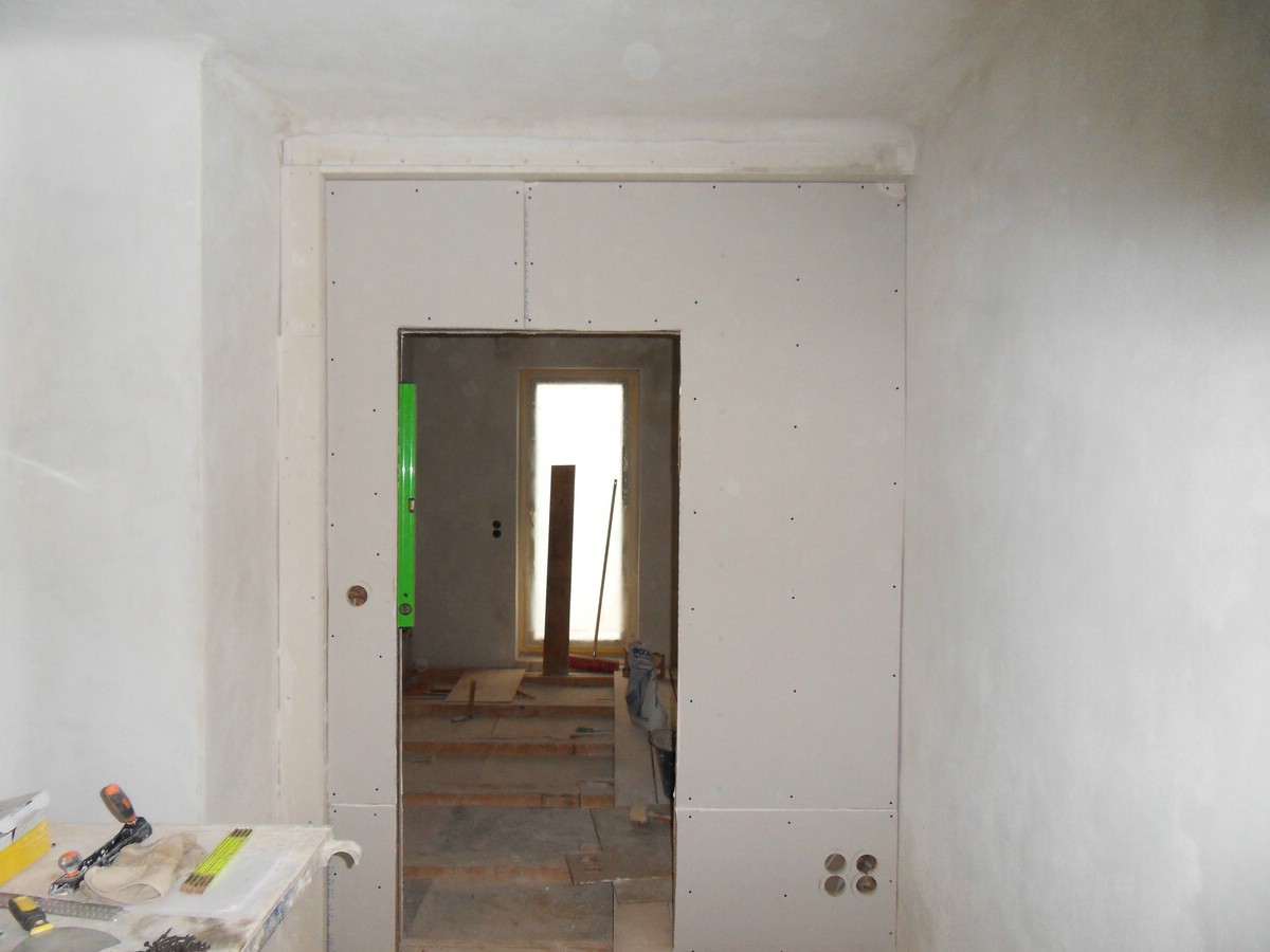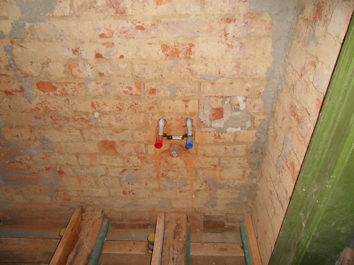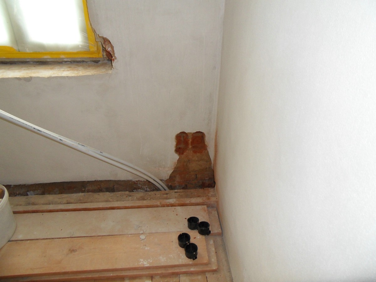 Im Bad ist nun Platz in der Wand für die Rohre nach oben. Also etwas mehr Platz in dem doch kleinen Bad.