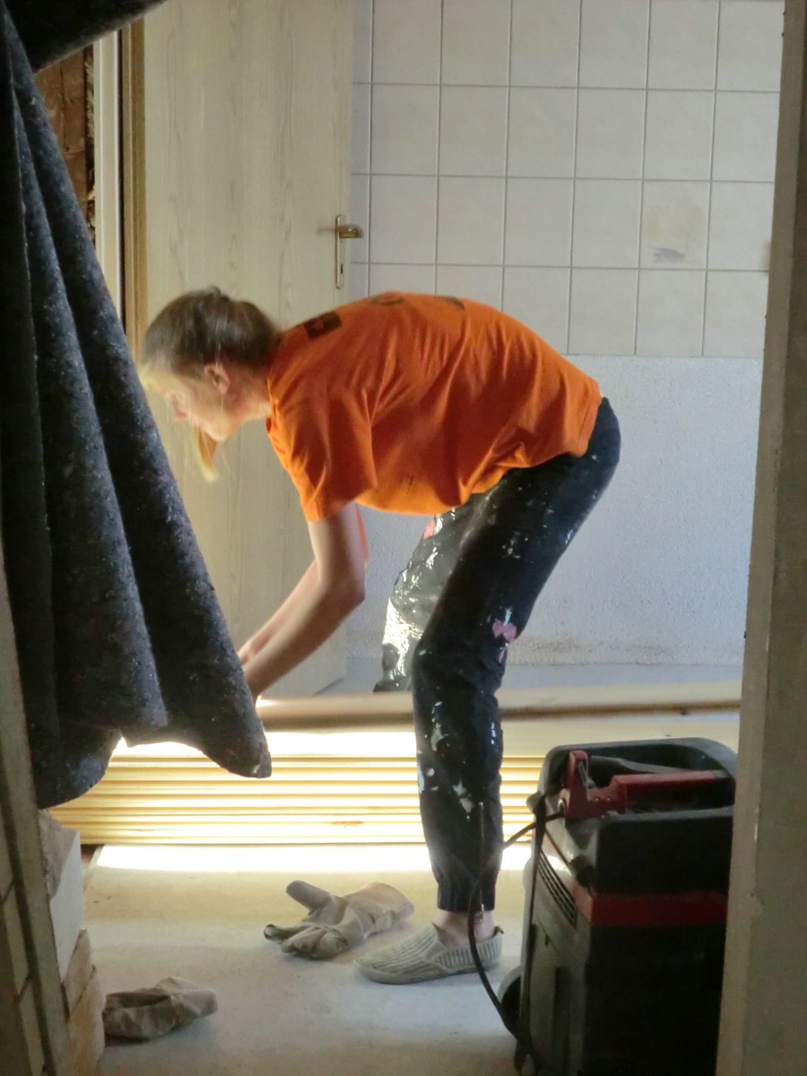 da trapste doch etwas über meinem Kopf, als ich wieder mal im Bad werkelte. Ein Vogel watschelte im Fehlboden herum.