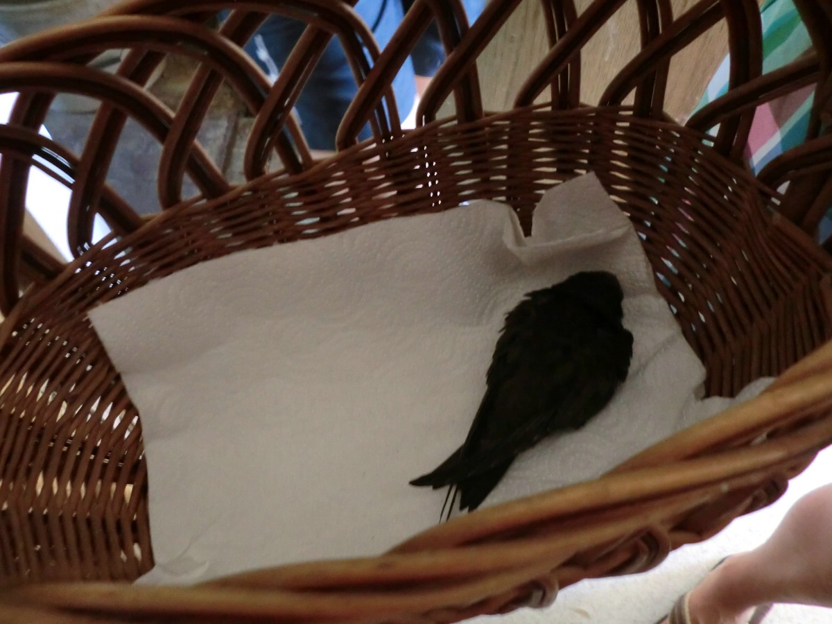 Internet angeworfen und … es ist ein Mauersegler. Viel zu jung um allein zu überleben. Handaufzucht ist nur was für Profis.