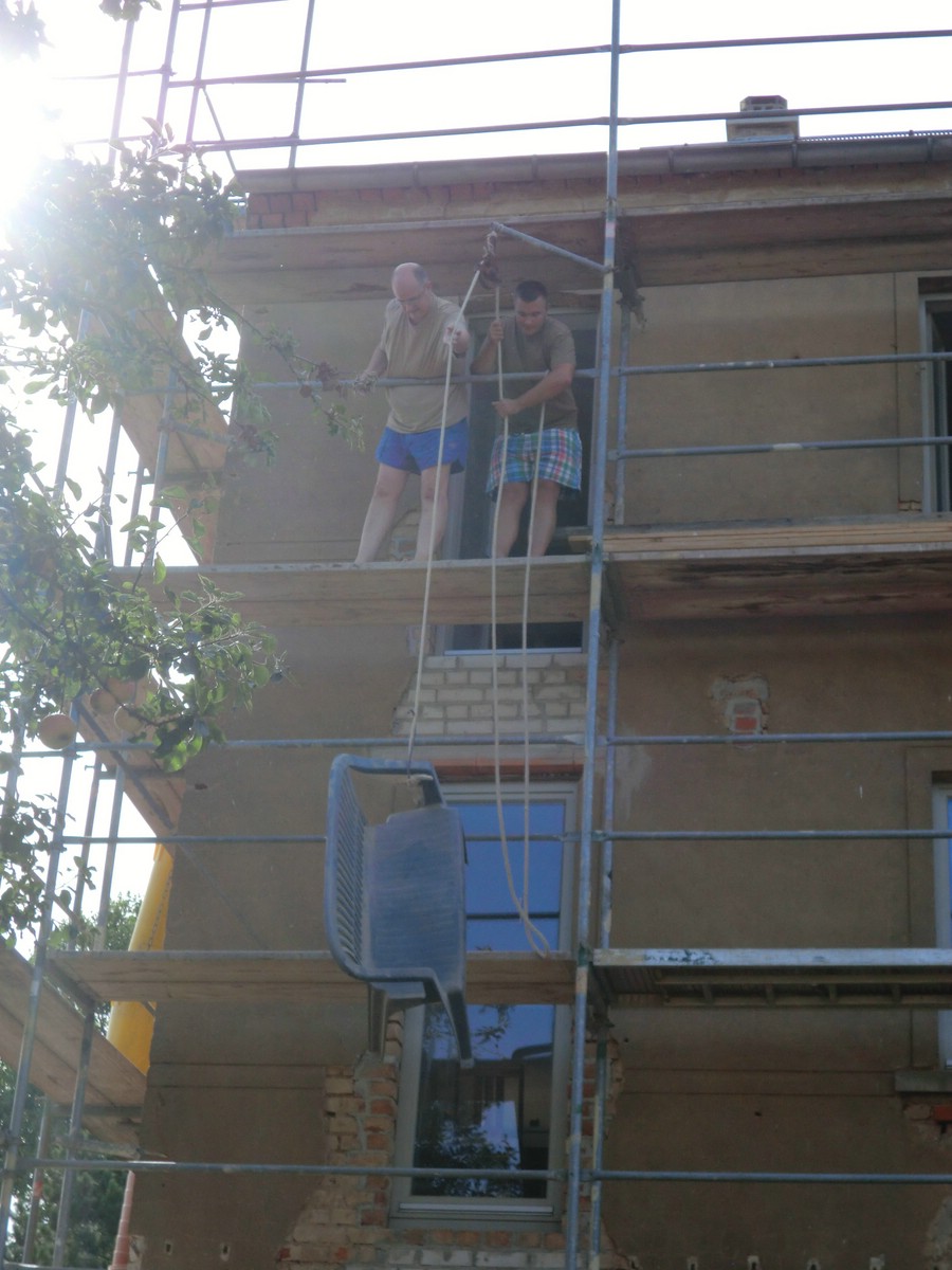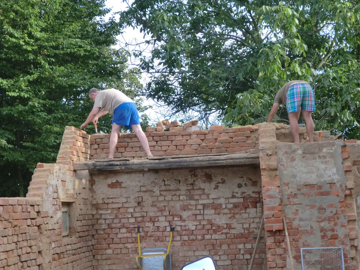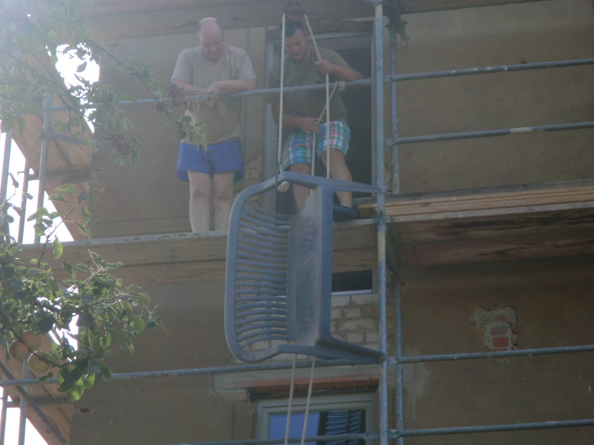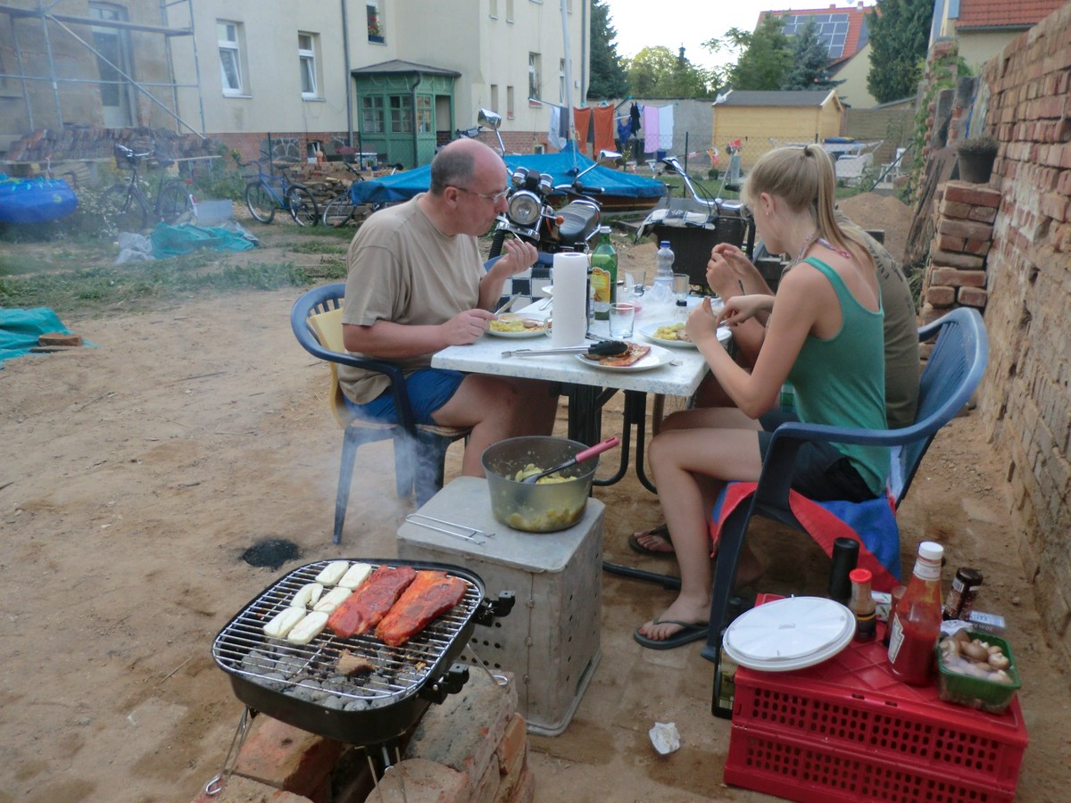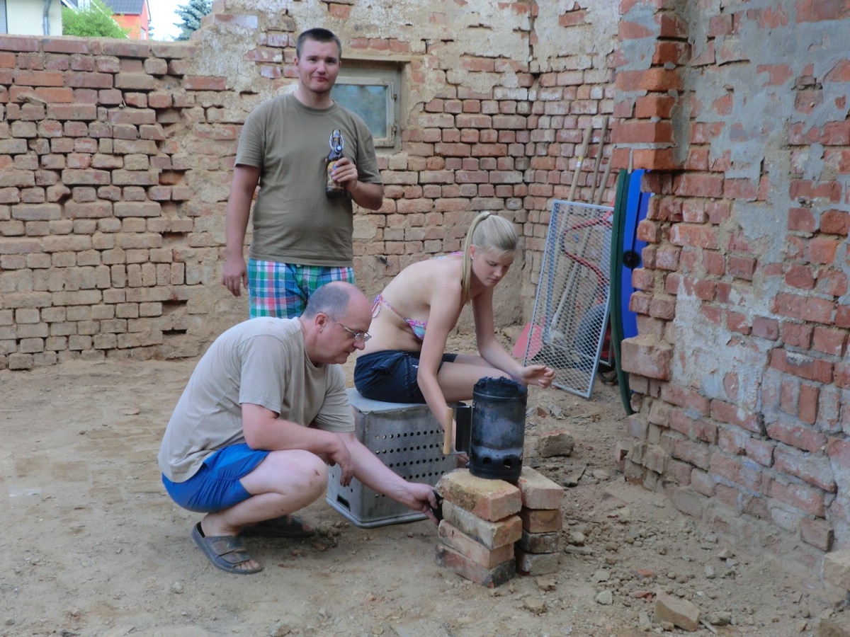 Dann haben wir das ehemalige Waschhaus weiter reduziert und die Gelegenheit genutzt, auf dem Hof anzugrillen!