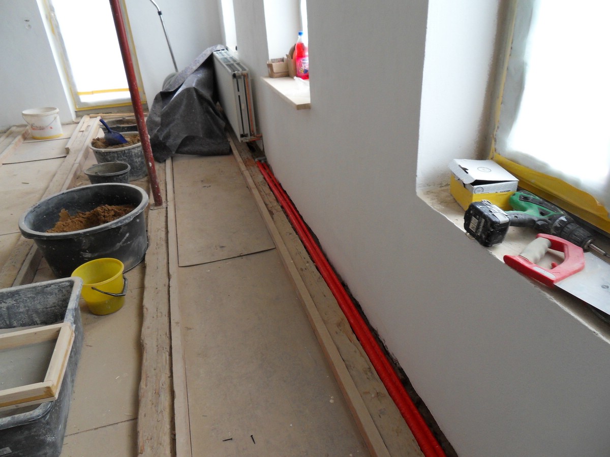 Im Bad ist nun Platz in der Wand für die Rohre nach oben. Also etwas mehr Platz in dem doch kleinen Bad.