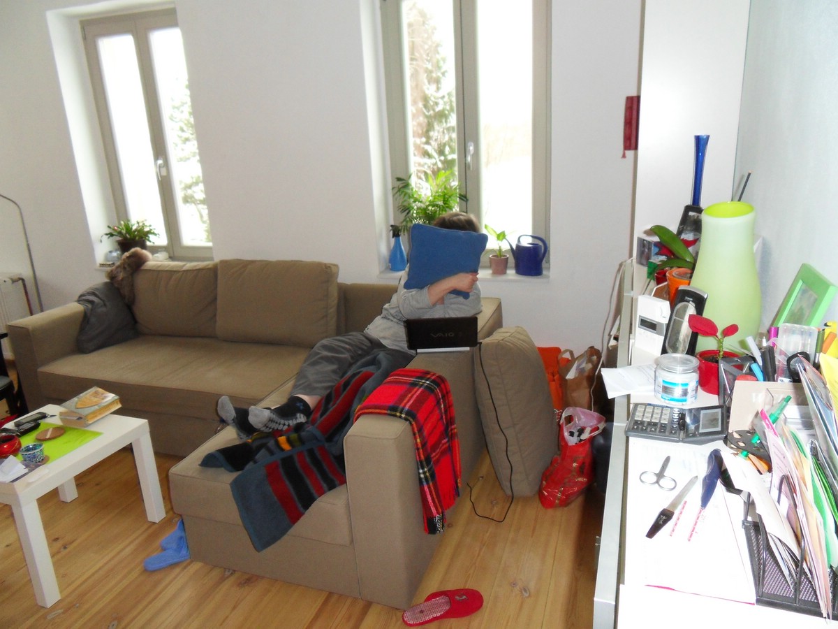 In der rechten Wohnung entkernt. Der Gipskarton an der Decke säuberlich mit der Stichsäge in Teile geschnitten und dann mit dem Yaris zum Müll gefahren. Die Wand zwischen Wohnküche und Bad entfernt, Putz abgeschlagen, die gesamte Installation abgebaut.