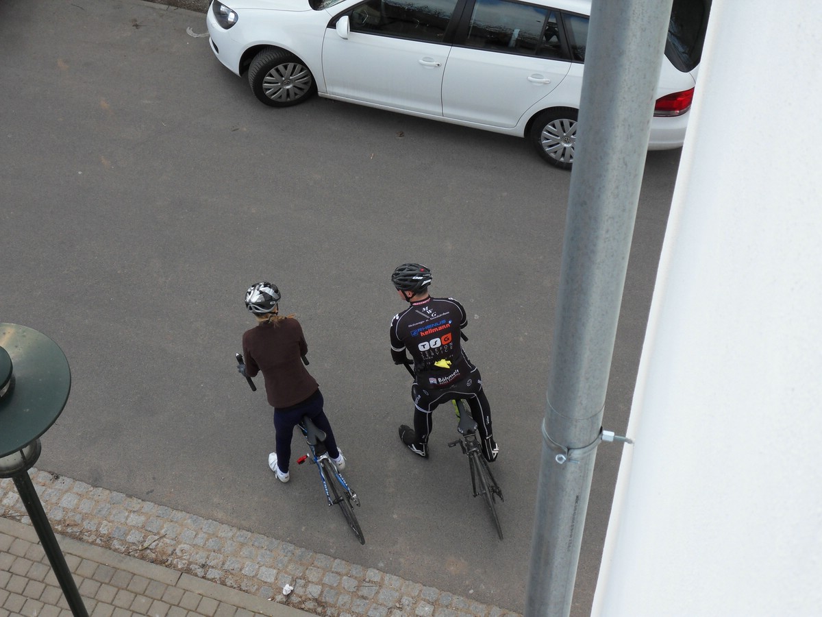 Maria hat uns heute mit ihrem neuen Rennrad besucht. Gemeinsam mit Ramon macht sie sich auf den Heimweg.