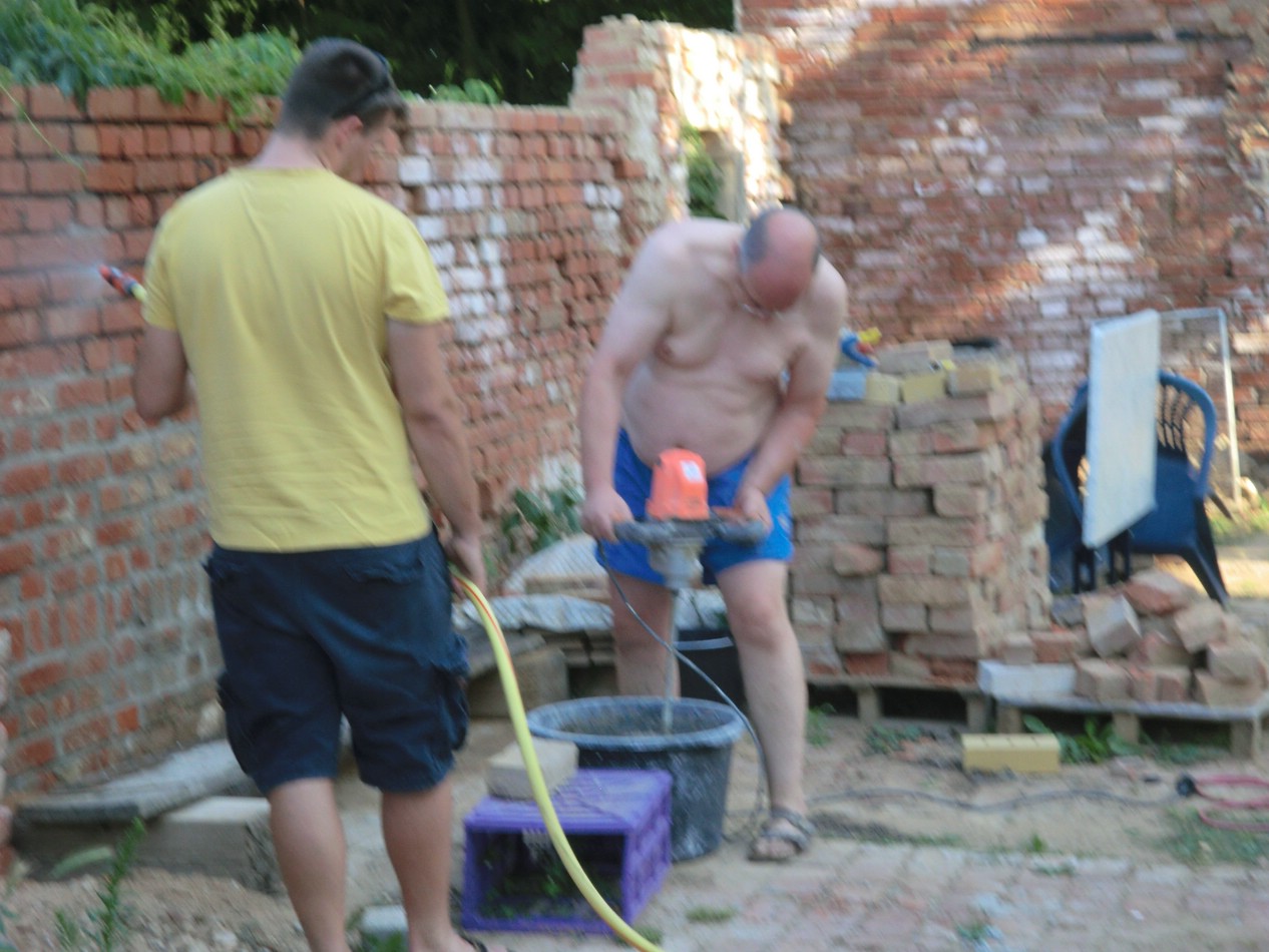 Einen 3/4 Container mit Schut gefüllt und noch mal einen Stapel Ziegel angelegt.