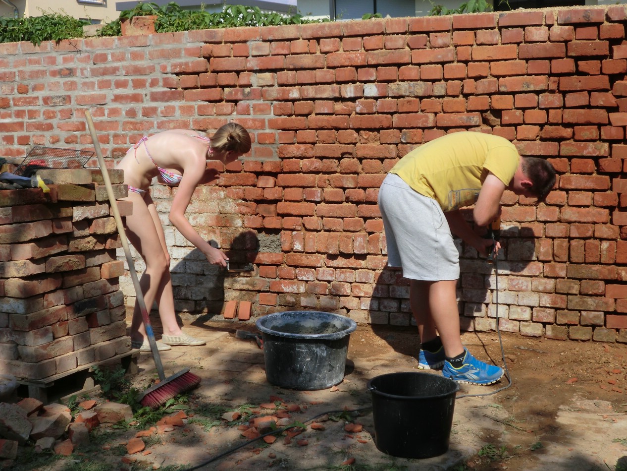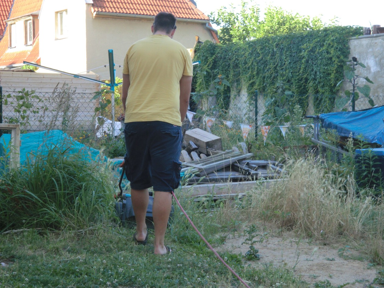 die letzten Wochen gab es alles mögliche. Von 14 – 34° Grad war alles dabei. Am Wasser hat Petrus auch nicht gespart. Wir haben einen Nachbar der uns beim Bauamt anzeigt und mit seinem Moped einen PKW-Parkplatz blockiert. Eine Nachbarin zäunt ihr Moped ein. Neue „Abgründe“ tun sich in den Wänden auf. Es gibt neue Grünpflanzen und der Rasen muss täglich gemäht werden. Das Fallrohr hat einen neuen Platz gefunden, die Schleuße musste dazu versetzt werden. Die Maurer sind dabei den Sockel aufzuhübschen. Auch sind zwei Sonnenliegen angeschafft. Der Hammer war aber das Unwetter. Den Nachbarn hat es das Dach vom Schuppen gehauen. Bei uns vorm Haus stand das Wasser auf der Straße.